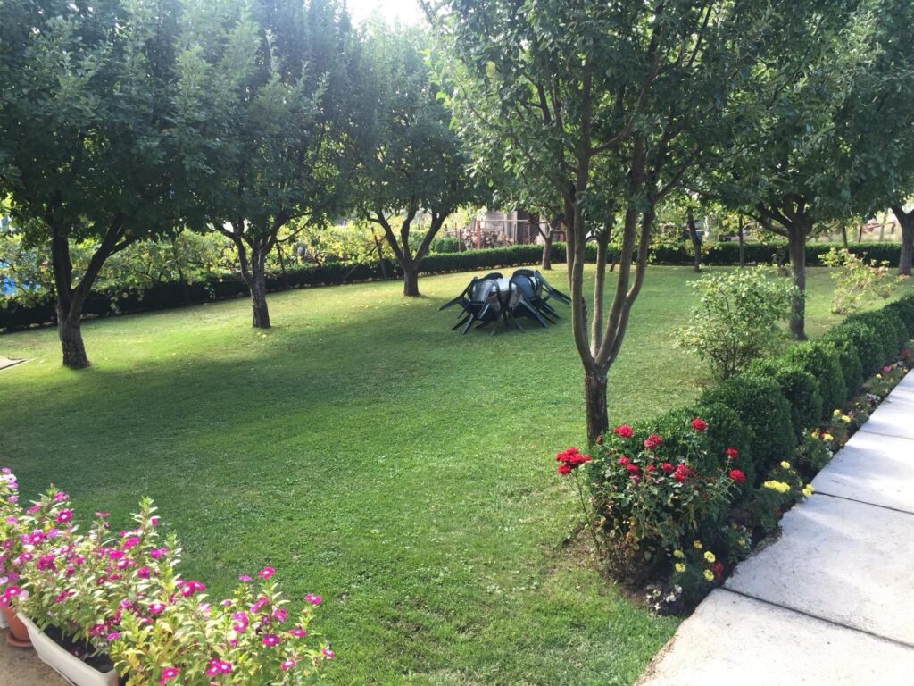 Der Rasen wird regelmäßig auf die optimale Höhe gemäht, Rasenkanten werden sauber