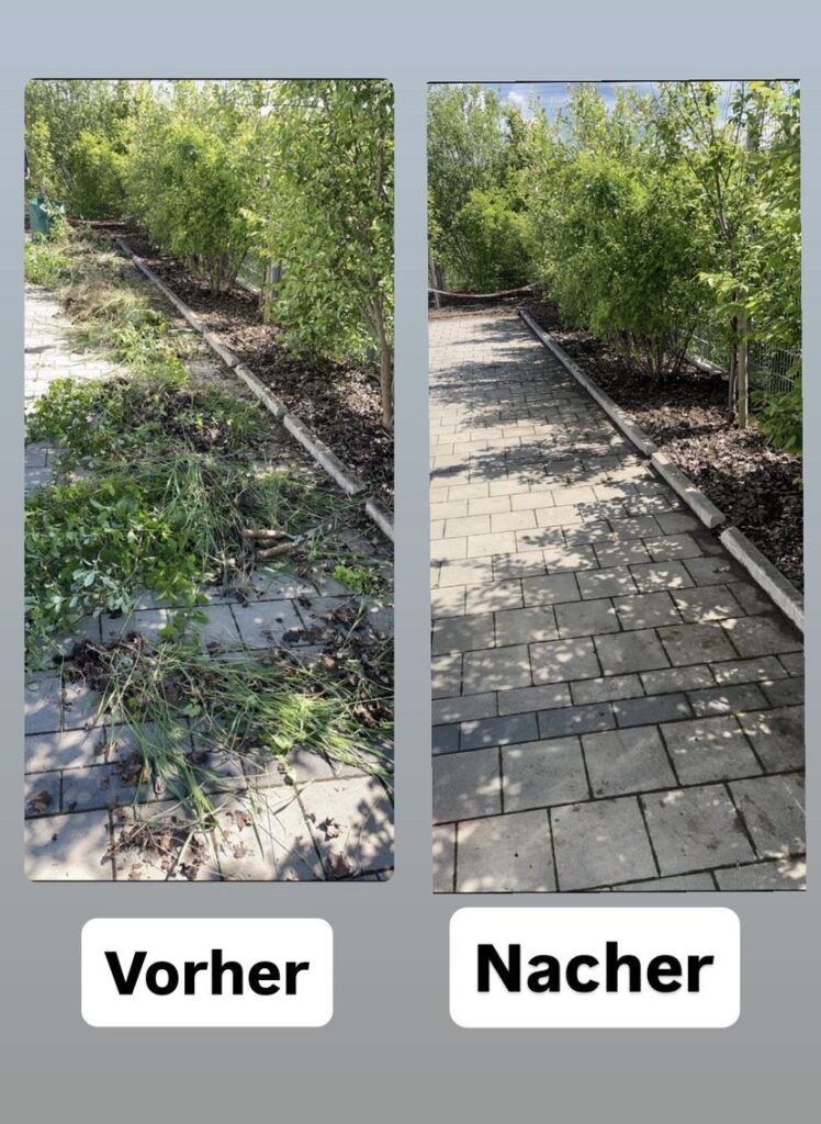 Hof- & Pflasterreinigung: Reinigung von Einfahrten, Gehwegen und Hofflächen. Entfernung von Schmutz, Moos und Algen für mehr Sicherheit und sauberes Aussehen.